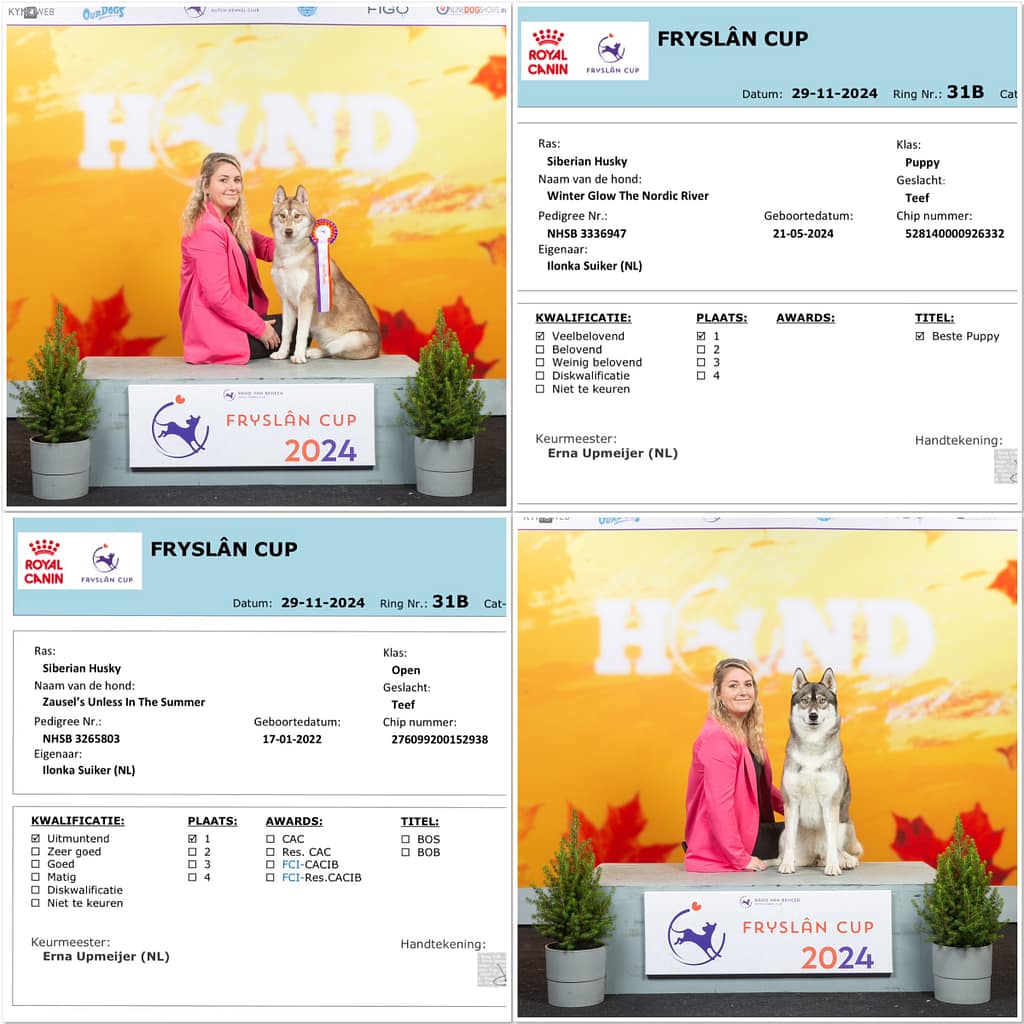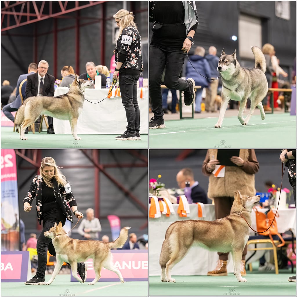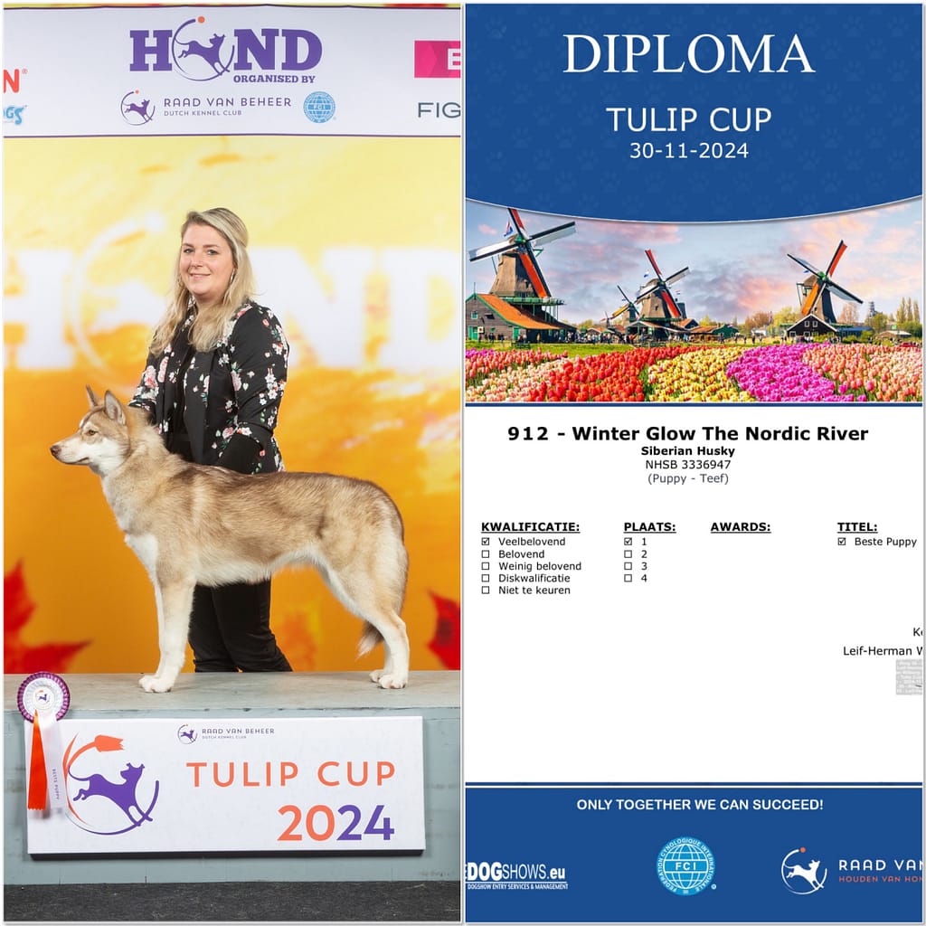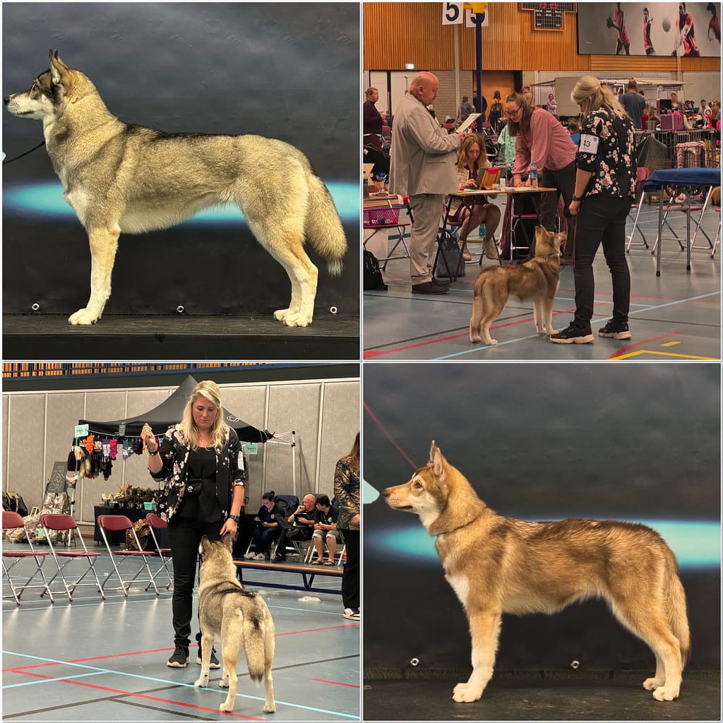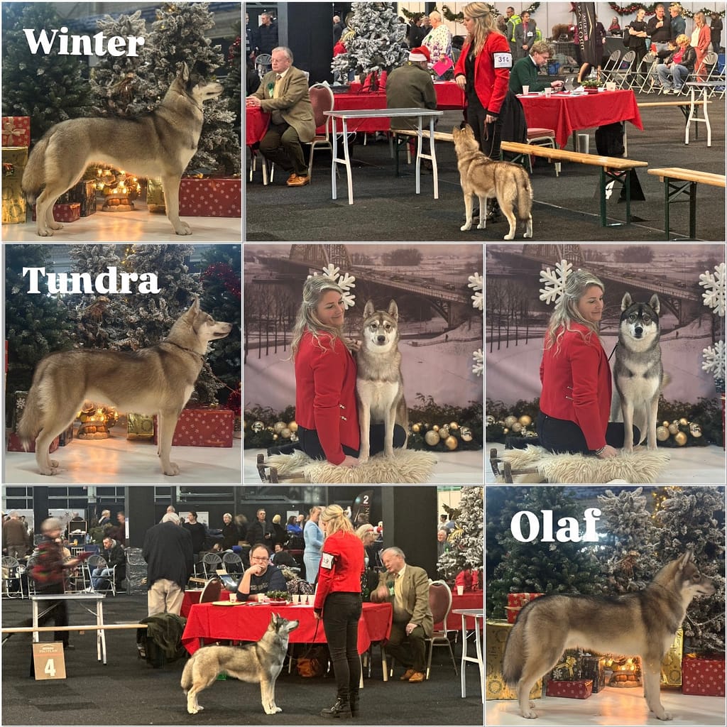 Geweldige show en wat hebben we genoten van iedereen! Tundra moest eerst tegen een ander teefje, daar werd ze eerste van! Daarna moest Tundra tegen het beste reutje en dat was haar broer Olaf en toen werd Tundra beste puppy! Super trots! Winter liep ook super, en werd eerste in de open klasse, tweede beste teef.